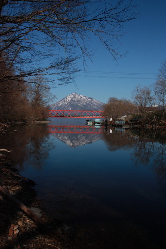 初めて見た無風の支笏湖。