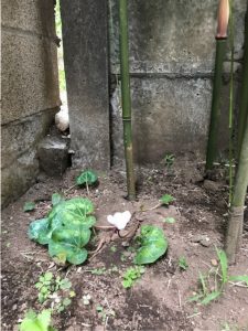 季節が終わったので庭の片隅に植え替えておいたシクラメン、可憐にも花を咲かせていました。