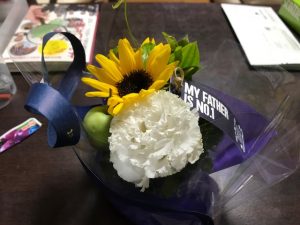 ところで先日の日曜日、娘から、渡されたのが小さなブーケ。