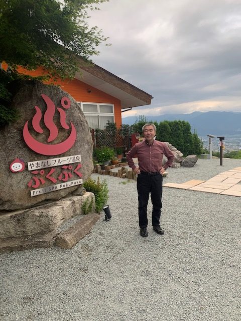 一通り視察と打ち合わせを終えて、日帰り温泉「やまなしフルーツ温泉ぷくぷく」によりました。