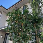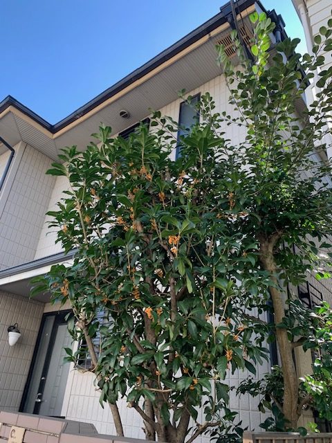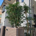 それから玄関前のモチノキの枝が伸びすぎているから伐って、という家人の要請で、枝切り作業。